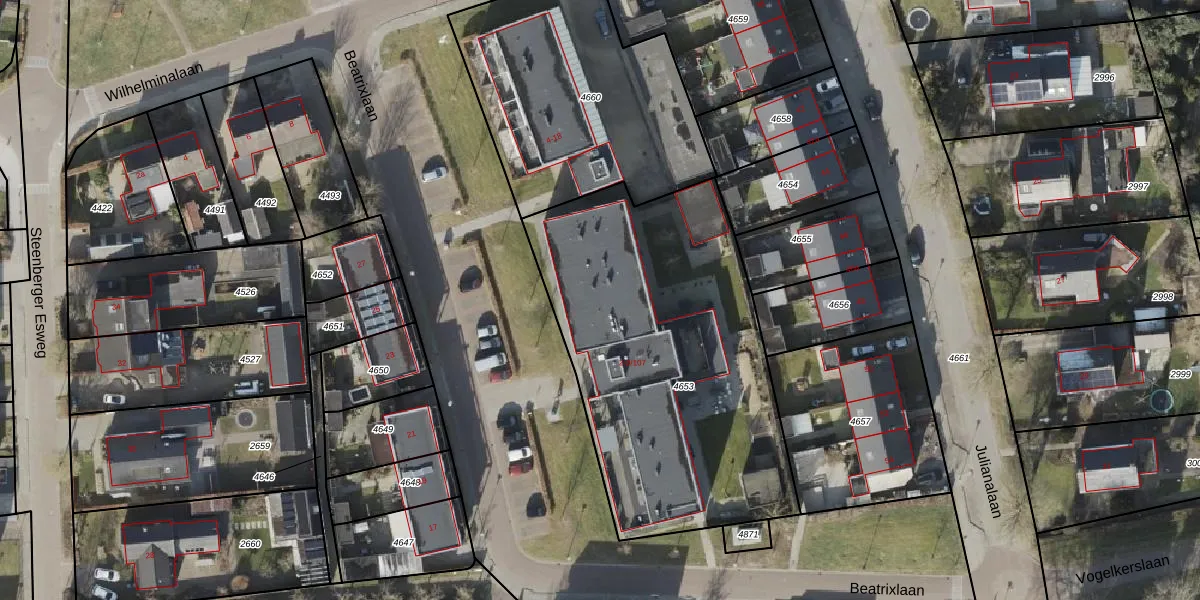 Beatrixlaan 2-19 is gelegen op kadastraal perceel ZWD02B4653. Deze kadastrale aanduiding is uniek en wordt gebruikt door het Kadaster om eigendomsrechten en andere zakelijke rechten vast te leggen. Het perceel maakt onderdeel uit van de kadastrale gemeente Zuidwolde.