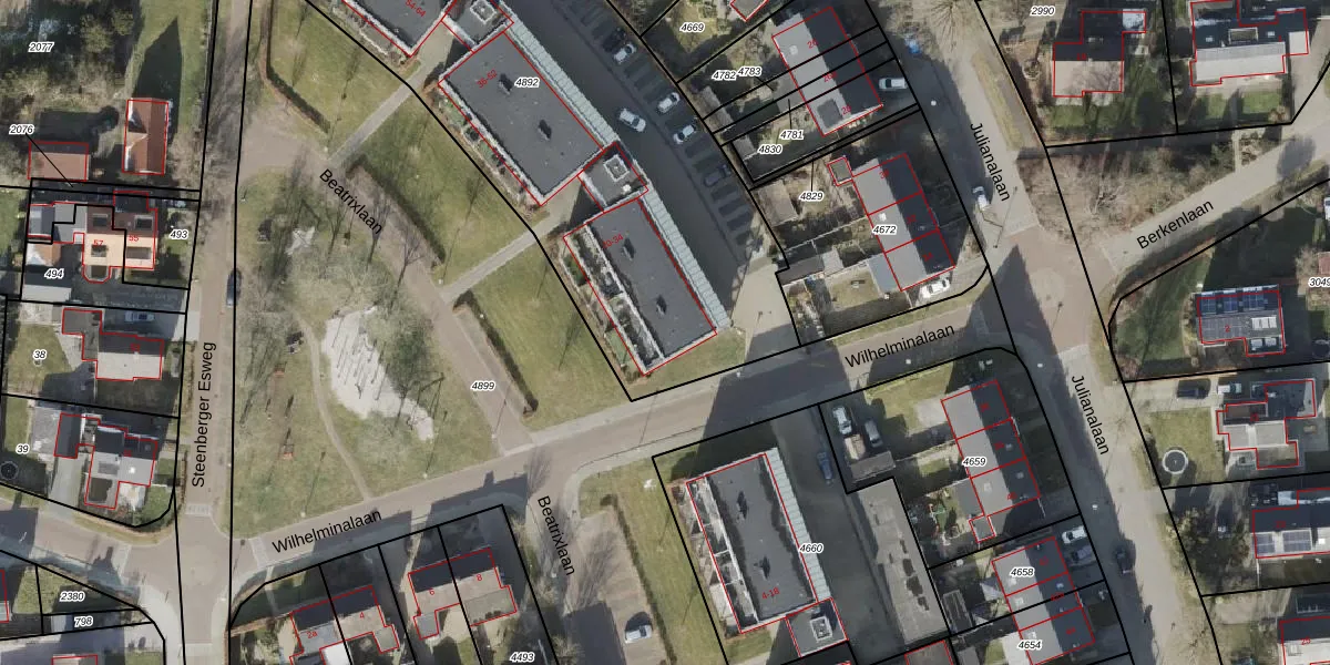 Beatrixlaan 26 is gelegen op kadastraal perceel ZWD02B4892. Deze kadastrale aanduiding is uniek en wordt gebruikt door het Kadaster om eigendomsrechten en andere zakelijke rechten vast te leggen. Het perceel maakt onderdeel uit van de kadastrale gemeente Zuidwolde.