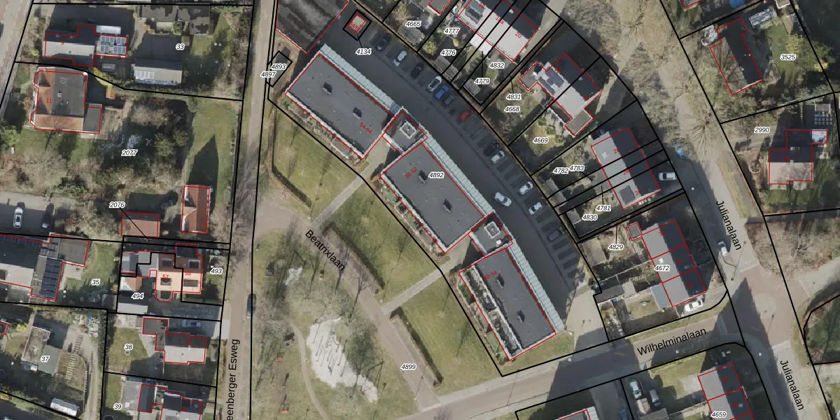 Beatrixlaan 38 is gelegen op kadastraal perceel ZWD02B4892. Deze kadastrale aanduiding is uniek en wordt gebruikt door het Kadaster om eigendomsrechten en andere zakelijke rechten vast te leggen. Het perceel maakt onderdeel uit van de kadastrale gemeente Zuidwolde.