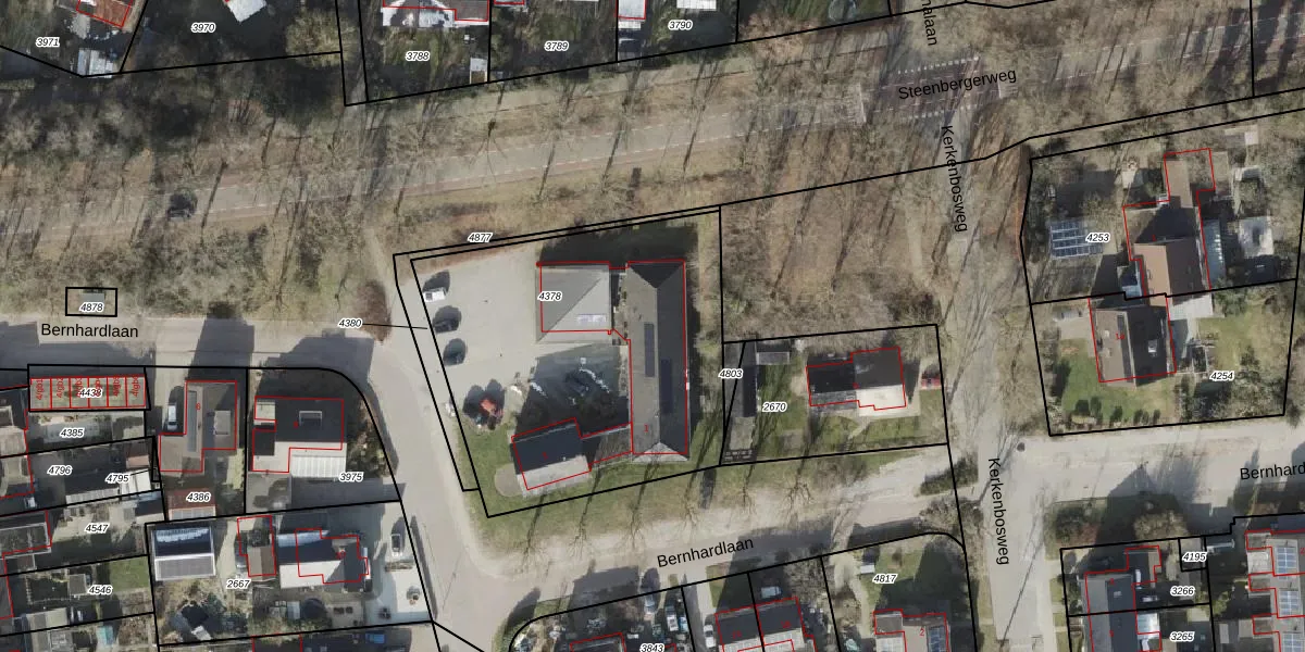 Bernhardlaan 1 is gelegen op kadastraal perceel ZWD02B4378. Deze kadastrale aanduiding is uniek en wordt gebruikt door het Kadaster om eigendomsrechten en andere zakelijke rechten vast te leggen. Het perceel maakt onderdeel uit van de kadastrale gemeente Zuidwolde.