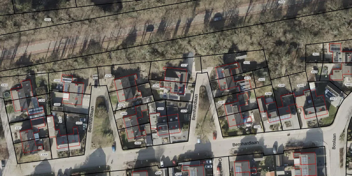 Het perceel waarop Bernhardlaan 39 staat heeft een oppervlakte van 254 m². Dit is een middelgroot perceel. De perceeloppervlakte wordt geregistreerd door het Kadaster. Gedetailleerde informatie over de maten van dit perceel kunt u vinden in het rapport Kadastrale kaart met maatvoering van Bernhardlaan 39.