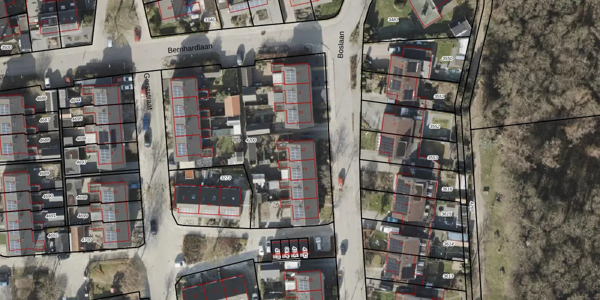 Boslaan 12 is gelegen op kadastraal perceel ZWD02B4200. Deze kadastrale aanduiding is uniek en wordt gebruikt door het Kadaster om eigendomsrechten en andere zakelijke rechten vast te leggen. Het perceel maakt onderdeel uit van de kadastrale gemeente Zuidwolde.