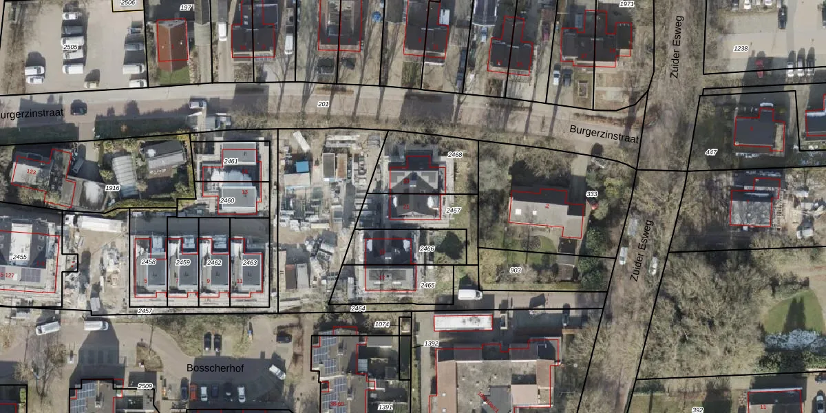 Gebruik de zoekbalk of klik op een perceel voor informatie over de adressen binnen dit perceel.