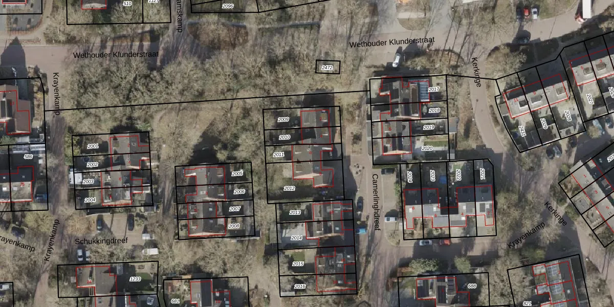Gebruik de zoekbalk of klik op een perceel voor informatie over de adressen binnen dit perceel.