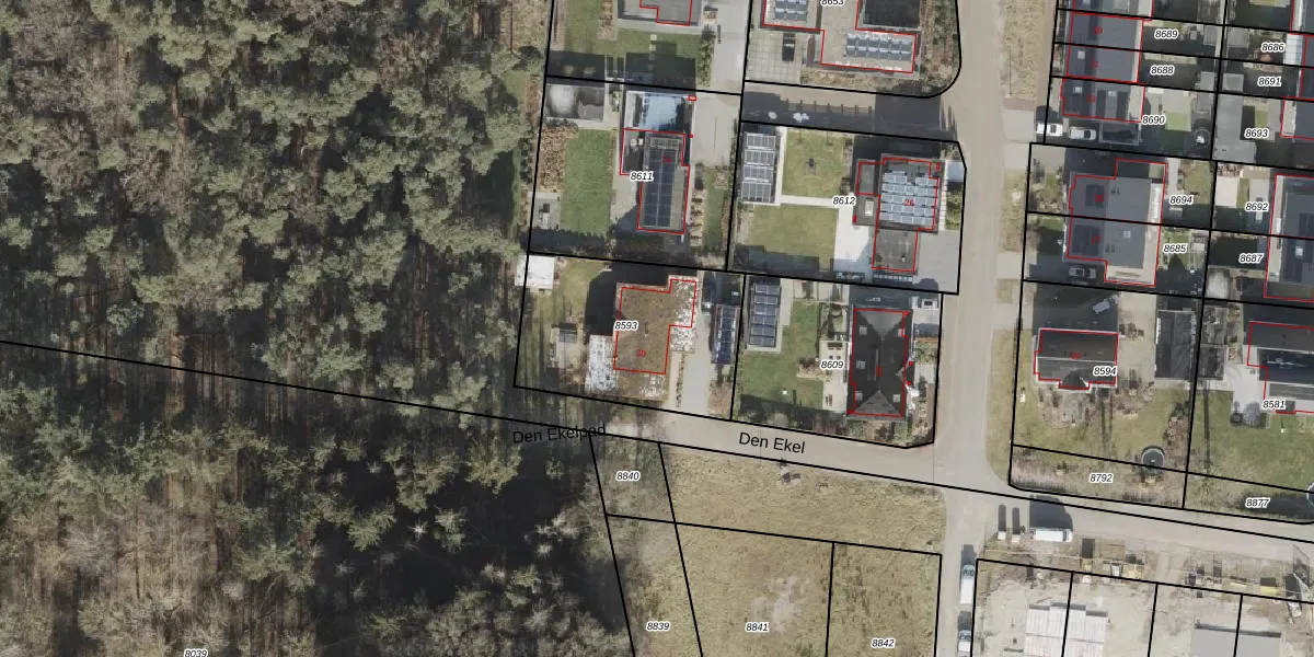 Het perceel waarop Den Ekel 30 staat heeft een oppervlakte van 718 m². Dit is een groot perceel. De perceeloppervlakte wordt geregistreerd door het Kadaster. Gedetailleerde informatie over de maten van dit perceel kunt u vinden in het rapport Kadastrale kaart met maatvoering van Den Ekel 30.