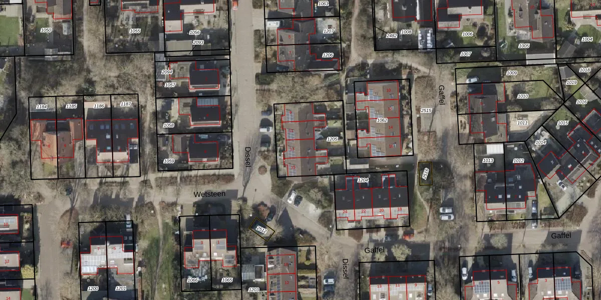 Het perceel waarop Dissel 13 staat heeft een oppervlakte van 563 m². Dit is een groot perceel. De perceeloppervlakte wordt geregistreerd door het Kadaster. Gedetailleerde informatie over de maten van dit perceel kunt u vinden in het rapport Kadastrale kaart met maatvoering van Dissel 13.
