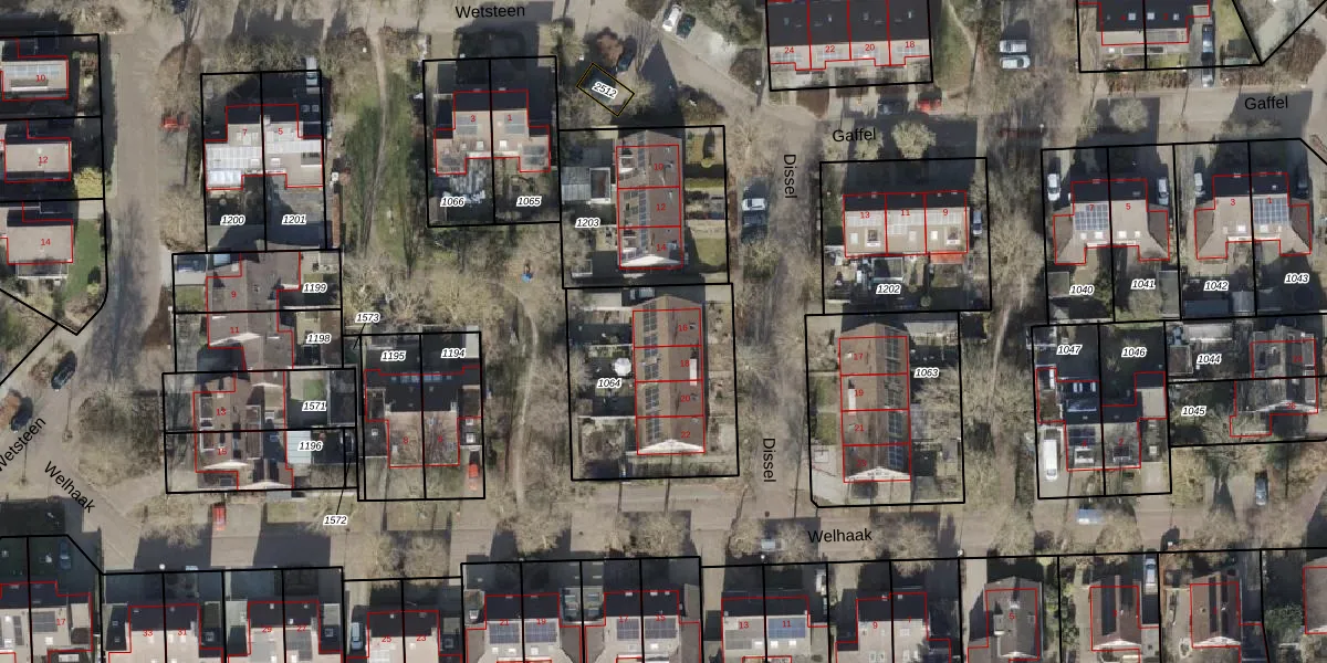 Het perceel waarop Dissel 16 staat heeft een oppervlakte van 727 m². Dit is een groot perceel. De perceeloppervlakte wordt geregistreerd door het Kadaster. Gedetailleerde informatie over de maten van dit perceel kunt u vinden in het rapport Kadastrale kaart met maatvoering van Dissel 16.