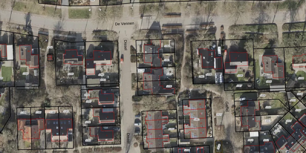 Het perceel waarop Dissel 5 staat heeft een oppervlakte van 223 m². Dit is een middelgroot perceel. De perceeloppervlakte wordt geregistreerd door het Kadaster. Gedetailleerde informatie over de maten van dit perceel kunt u vinden in het rapport Kadastrale kaart met maatvoering van Dissel 5.