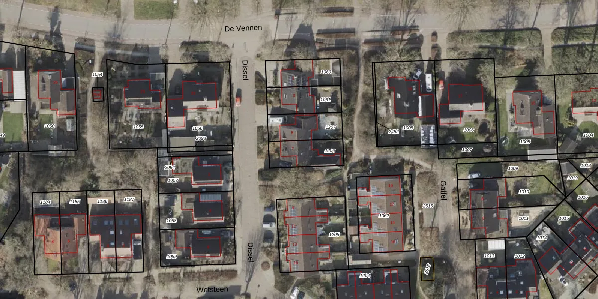 Gebruik de zoekbalk of klik op een perceel voor informatie over de adressen binnen dit perceel.