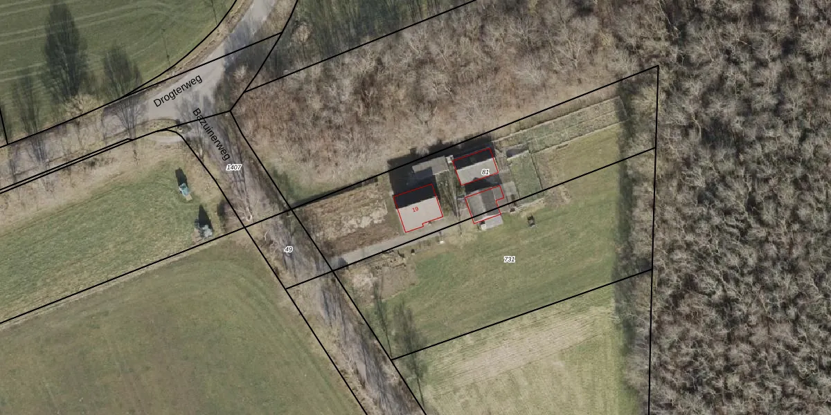 Drogterweg 19 is gelegen op kadastraal perceel ZWD02Q81. Deze kadastrale aanduiding is uniek en wordt gebruikt door het Kadaster om eigendomsrechten en andere zakelijke rechten vast te leggen. Het perceel maakt onderdeel uit van de kadastrale gemeente Zuidwolde.