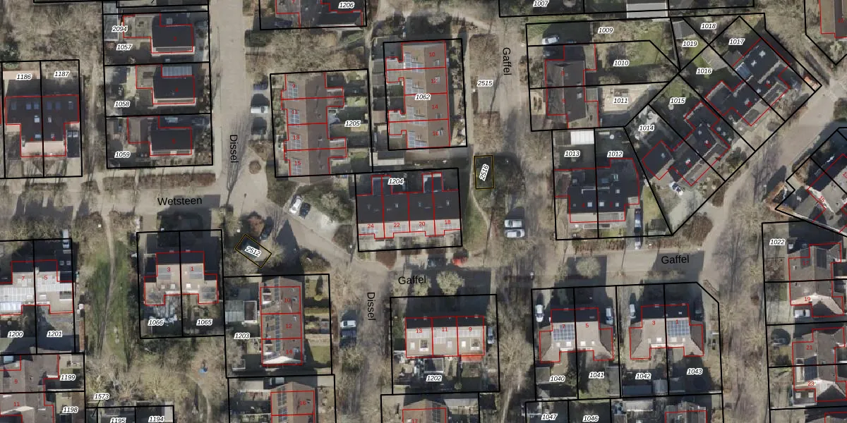 Gaffel 20 is gelegen op kadastraal perceel ZWD02I1204. Deze kadastrale aanduiding is uniek en wordt gebruikt door het Kadaster om eigendomsrechten en andere zakelijke rechten vast te leggen. Het perceel maakt onderdeel uit van de kadastrale gemeente Zuidwolde.