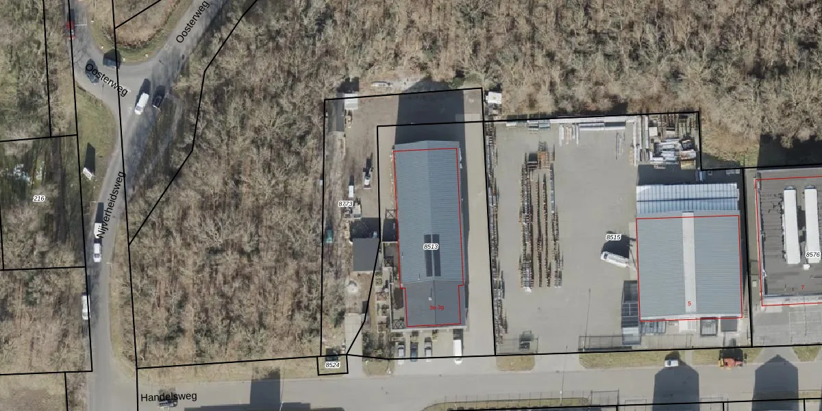 Handelsweg 3-h is gelegen op kadastraal perceel ZWD02C8513. Deze kadastrale aanduiding is uniek en wordt gebruikt door het Kadaster om eigendomsrechten en andere zakelijke rechten vast te leggen. Het perceel maakt onderdeel uit van de kadastrale gemeente Zuidwolde.