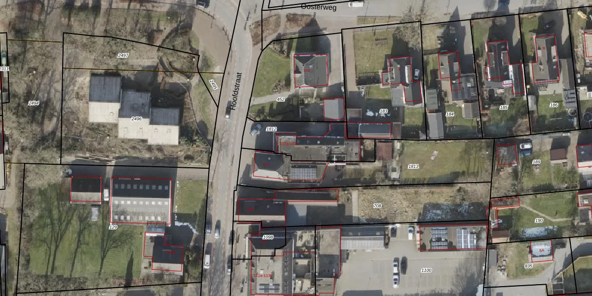Het perceel waarop Hoofdstraat 107-b staat heeft een oppervlakte van 492 m². Dit is een groot perceel. De perceeloppervlakte wordt geregistreerd door het Kadaster. Gedetailleerde informatie over de maten van dit perceel kunt u vinden in het rapport Kadastrale kaart met maatvoering van Hoofdstraat 107-b.