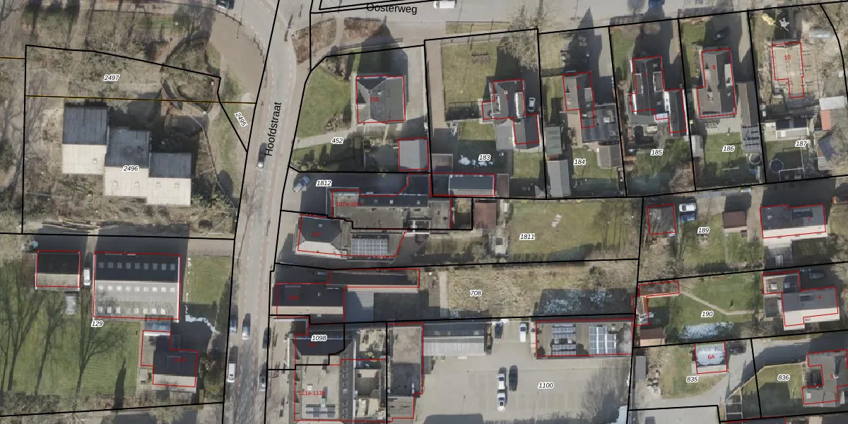 Het perceel waarop Hoofdstraat 107-c staat heeft een oppervlakte van 492 m². Dit is een groot perceel. De perceeloppervlakte wordt geregistreerd door het Kadaster. Gedetailleerde informatie over de maten van dit perceel kunt u vinden in het rapport Kadastrale kaart met maatvoering van Hoofdstraat 107-c.