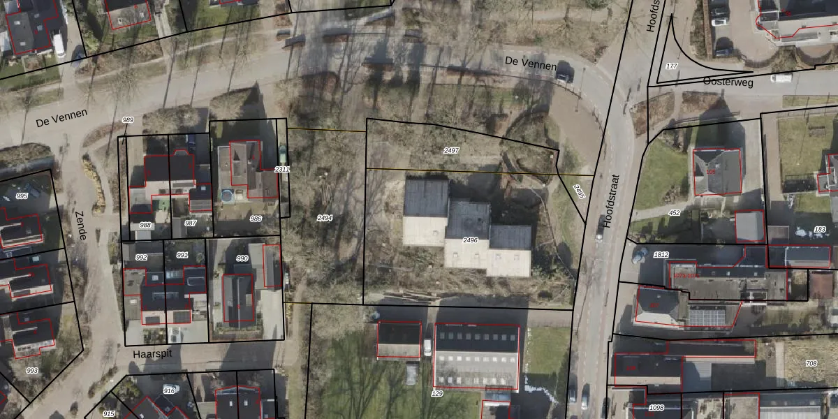 Het perceel waarop Hoofdstraat 110-15 staat heeft een oppervlakte van 1635 m². Dit is een zeer groot perceel. De perceeloppervlakte wordt geregistreerd door het Kadaster. Gedetailleerde informatie over de maten van dit perceel kunt u vinden in het rapport Kadastrale kaart met maatvoering van Hoofdstraat 110-15.