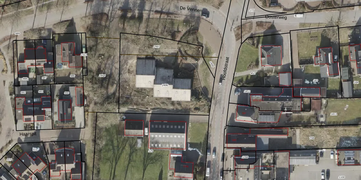 Het perceel waarop Hoofdstraat 110-21 staat heeft een oppervlakte van 1635 m². Dit is een zeer groot perceel. De perceeloppervlakte wordt geregistreerd door het Kadaster. Gedetailleerde informatie over de maten van dit perceel kunt u vinden in het rapport Kadastrale kaart met maatvoering van Hoofdstraat 110-21.