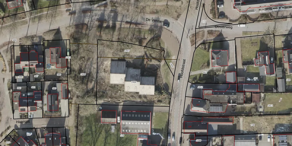 Het perceel waarop Hoofdstraat 110-22 staat heeft een oppervlakte van 1635 m². Dit is een zeer groot perceel. De perceeloppervlakte wordt geregistreerd door het Kadaster. Gedetailleerde informatie over de maten van dit perceel kunt u vinden in het rapport Kadastrale kaart met maatvoering van Hoofdstraat 110-22.