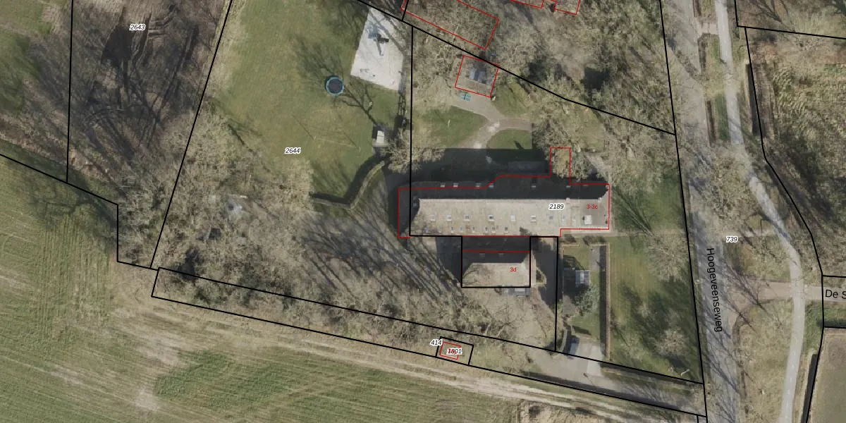 Hoogeveenseweg 3-c is gelegen op kadastraal perceel ZWD02Q2189. Deze kadastrale aanduiding is uniek en wordt gebruikt door het Kadaster om eigendomsrechten en andere zakelijke rechten vast te leggen. Het perceel maakt onderdeel uit van de kadastrale gemeente Zuidwolde.