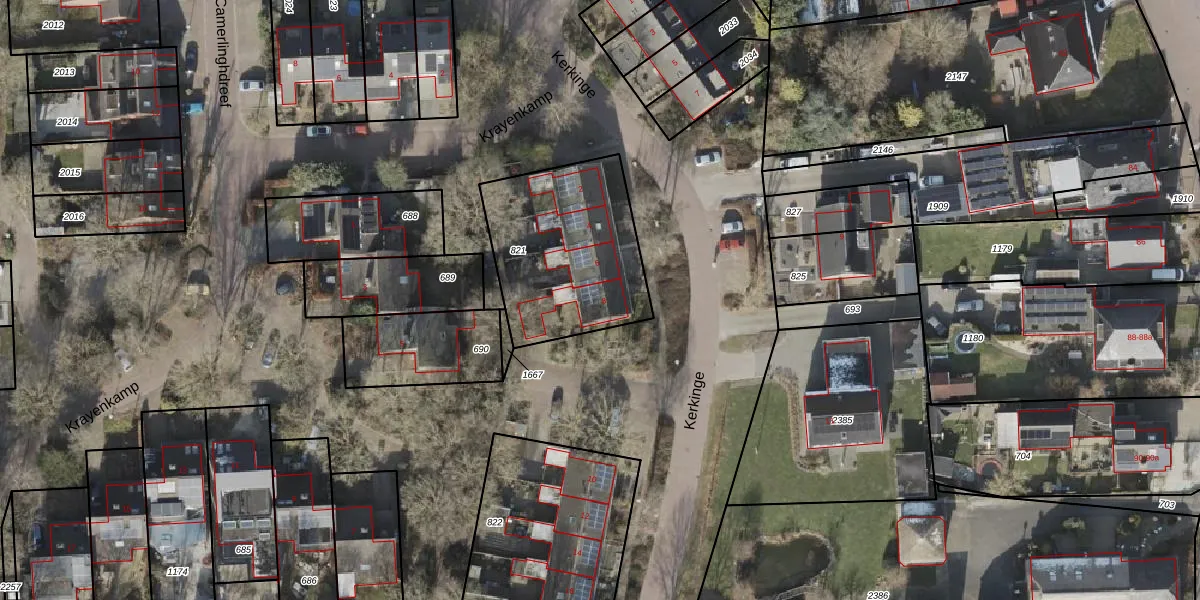 Het perceel waarop Kerkinge 8 staat heeft een oppervlakte van 673 m². Dit is een groot perceel. De perceeloppervlakte wordt geregistreerd door het Kadaster. Gedetailleerde informatie over de maten van dit perceel kunt u vinden in het rapport Kadastrale kaart met maatvoering van Kerkinge 8.