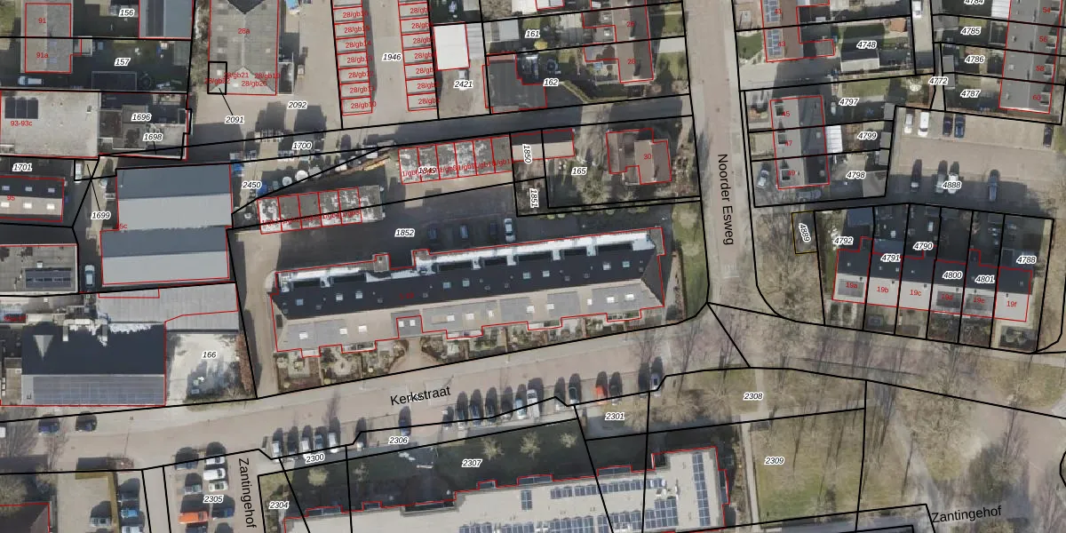 Kerkstraat 16 is gelegen op kadastraal perceel ZWD02I1852. Deze kadastrale aanduiding is uniek en wordt gebruikt door het Kadaster om eigendomsrechten en andere zakelijke rechten vast te leggen. Het perceel maakt onderdeel uit van de kadastrale gemeente Zuidwolde.