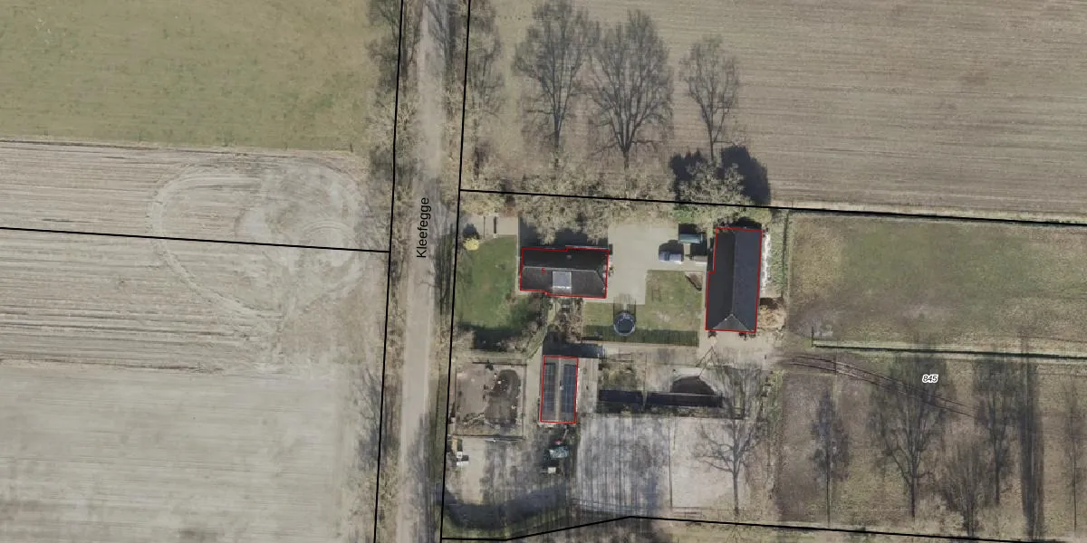 Het perceel waarop Kleefegge 5 staat heeft een oppervlakte van 1,0 ha. Dit is een zeer groot perceel. De perceeloppervlakte wordt geregistreerd door het Kadaster. Gedetailleerde informatie over de maten van dit perceel kunt u vinden in het rapport Kadastrale kaart met maatvoering van Kleefegge 5.