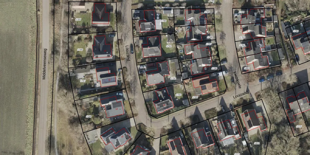Het perceel waarop Looizand 13 staat heeft een oppervlakte van 460 m². Dit is een groot perceel. De perceeloppervlakte wordt geregistreerd door het Kadaster. Gedetailleerde informatie over de maten van dit perceel kunt u vinden in het rapport Kadastrale kaart met maatvoering van Looizand 13.