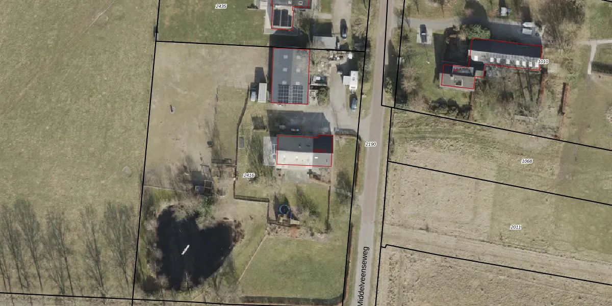 Middelveenseweg 18 is gelegen op kadastraal perceel ZWD02Q2416. Deze kadastrale aanduiding is uniek en wordt gebruikt door het Kadaster om eigendomsrechten en andere zakelijke rechten vast te leggen. Het perceel maakt onderdeel uit van de kadastrale gemeente Zuidwolde.