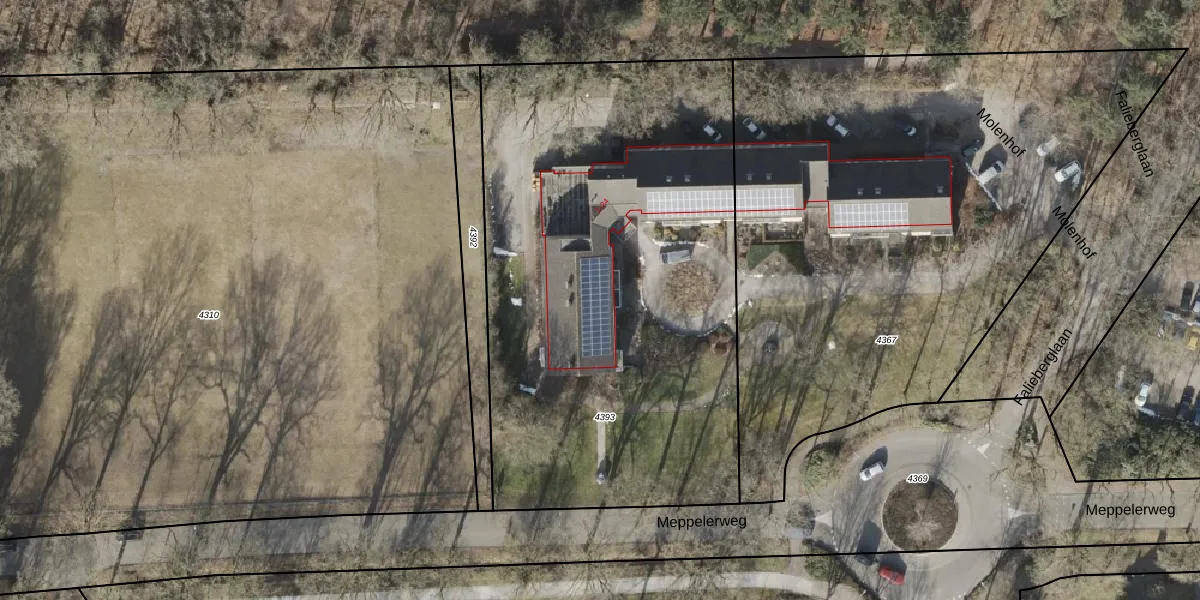 Het perceel waarop Molenhof 2 staat heeft een oppervlakte van 2966 m². Dit is een zeer groot perceel. De perceeloppervlakte wordt geregistreerd door het Kadaster. Gedetailleerde informatie over de maten van dit perceel kunt u vinden in het rapport Kadastrale kaart met maatvoering van Molenhof 2.