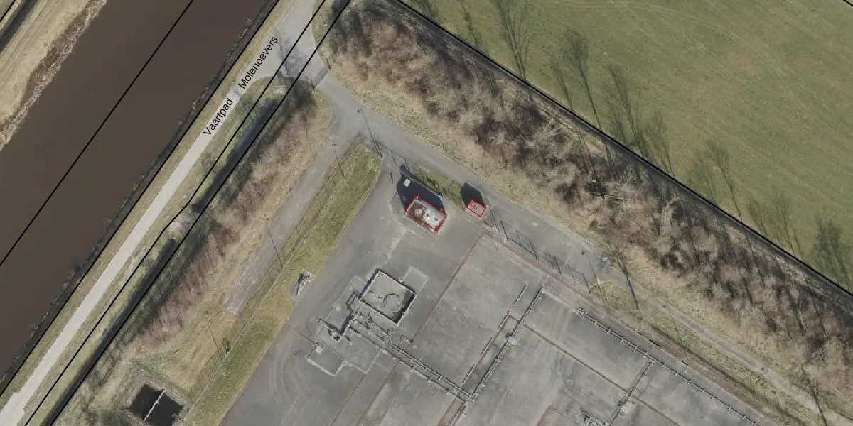 Het perceel waarop Molenoevers 7 staat heeft een oppervlakte van 2,5 ha. Dit is een zeer groot perceel. De perceeloppervlakte wordt geregistreerd door het Kadaster. Gedetailleerde informatie over de maten van dit perceel kunt u vinden in het rapport Kadastrale kaart met maatvoering van Molenoevers 7.
