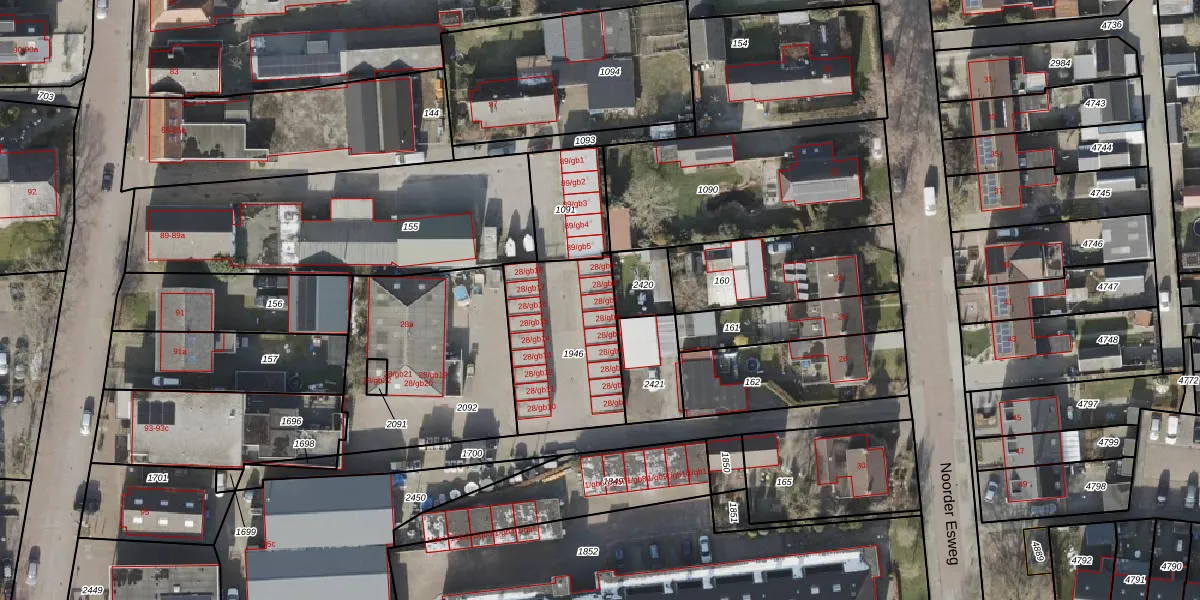 Noorder Esweg 28-gb7 is gelegen op kadastraal perceel ZWD02I1946. Deze kadastrale aanduiding is uniek en wordt gebruikt door het Kadaster om eigendomsrechten en andere zakelijke rechten vast te leggen. Het perceel maakt onderdeel uit van de kadastrale gemeente Zuidwolde.