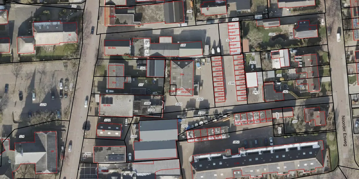 Noorder Esweg 28-gb21 is gelegen op kadastraal perceel ZWD02I2092. Deze kadastrale aanduiding is uniek en wordt gebruikt door het Kadaster om eigendomsrechten en andere zakelijke rechten vast te leggen. Het perceel maakt onderdeel uit van de kadastrale gemeente Zuidwolde.