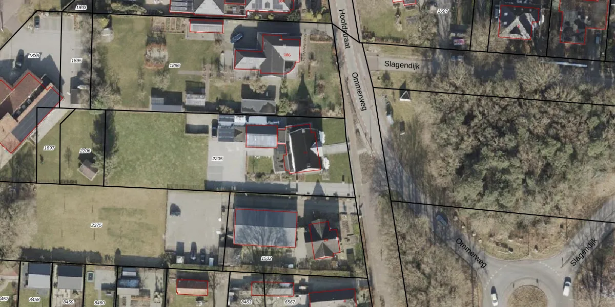 Het perceel waarop Ommerweg 2 staat heeft een oppervlakte van 2015 m². Dit is een zeer groot perceel. De perceeloppervlakte wordt geregistreerd door het Kadaster. Gedetailleerde informatie over de maten van dit perceel kunt u vinden in het rapport Kadastrale kaart met maatvoering van Ommerweg 2.