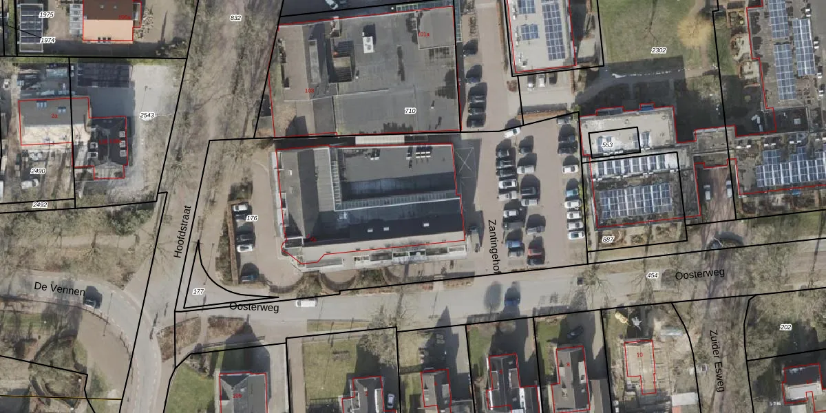 Oosterweg 1-g is gelegen op kadastraal perceel ZWD02I176. Deze kadastrale aanduiding is uniek en wordt gebruikt door het Kadaster om eigendomsrechten en andere zakelijke rechten vast te leggen. Het perceel maakt onderdeel uit van de kadastrale gemeente Zuidwolde.