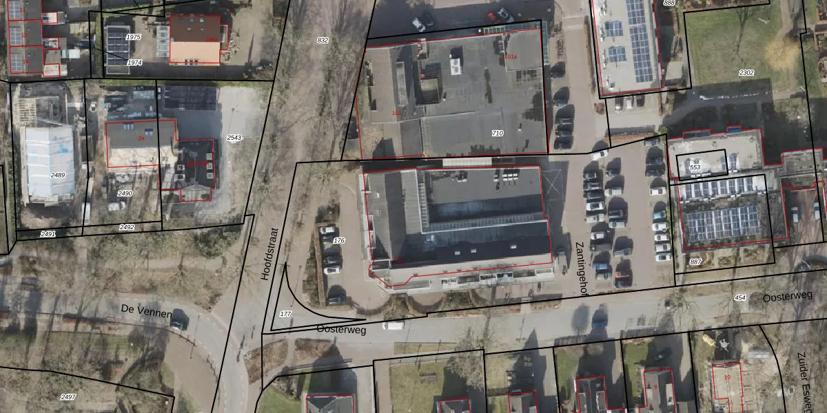 Oosterweg 1-b is gelegen op kadastraal perceel ZWD02I176. Deze kadastrale aanduiding is uniek en wordt gebruikt door het Kadaster om eigendomsrechten en andere zakelijke rechten vast te leggen. Het perceel maakt onderdeel uit van de kadastrale gemeente Zuidwolde.