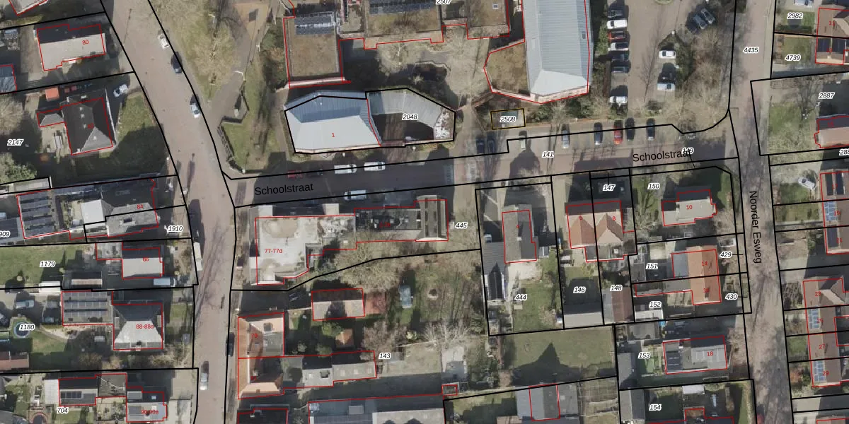 Schoolstraat 2-b is gelegen op kadastraal perceel ZWD02I445. Deze kadastrale aanduiding is uniek en wordt gebruikt door het Kadaster om eigendomsrechten en andere zakelijke rechten vast te leggen. Het perceel maakt onderdeel uit van de kadastrale gemeente Zuidwolde.