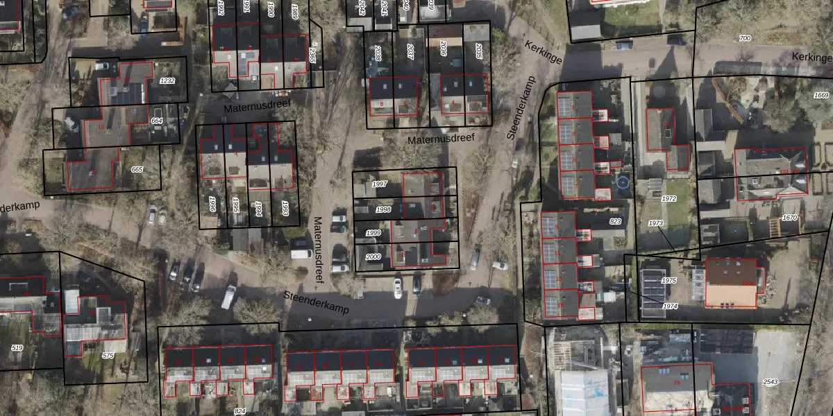 Gebruik de zoekbalk of klik op een perceel voor informatie over de adressen binnen dit perceel.