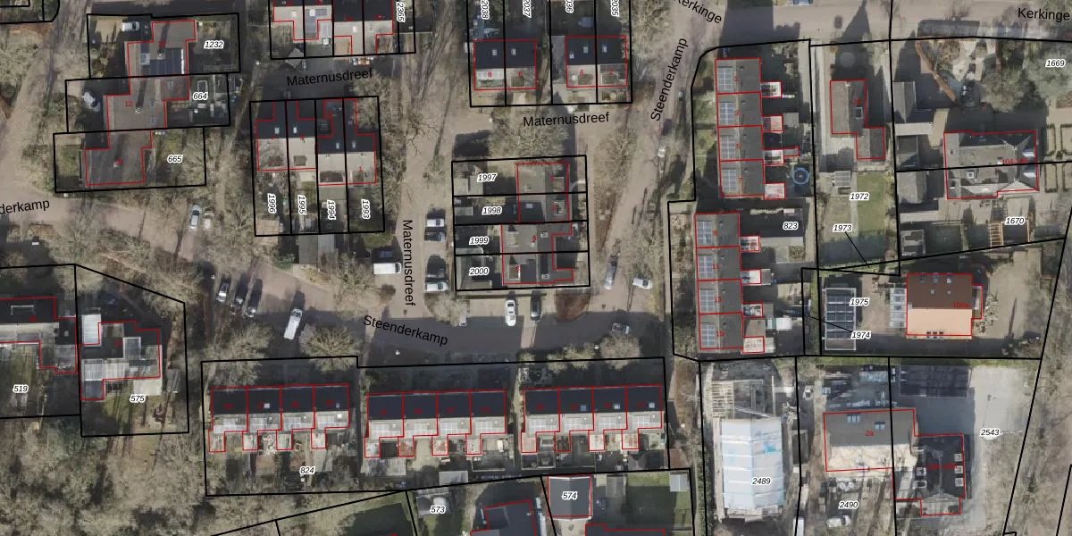Gebruik de zoekbalk of klik op een perceel voor informatie over de adressen binnen dit perceel.