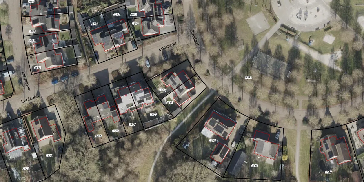 Gebruik de zoekbalk of klik op een perceel voor informatie over de adressen binnen dit perceel.