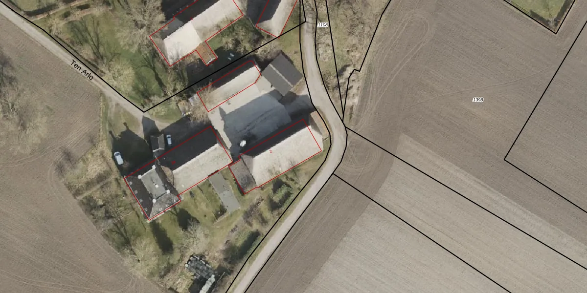 Het perceel waarop Ten Arlo 2 staat heeft een oppervlakte van 2,7 ha. Dit is een zeer groot perceel. De perceeloppervlakte wordt geregistreerd door het Kadaster. Gedetailleerde informatie over de maten van dit perceel kunt u vinden in het rapport Kadastrale kaart met maatvoering van Ten Arlo 2.