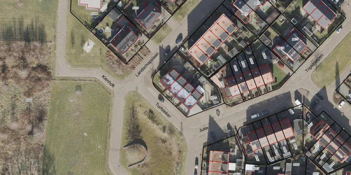 Het perceel waarop Turfsteker 14 staat heeft een oppervlakte van 1805 m². Dit is een zeer groot perceel. De perceeloppervlakte wordt geregistreerd door het Kadaster. Gedetailleerde informatie over de maten van dit perceel kunt u vinden in het rapport Kadastrale kaart met maatvoering van Turfsteker 14.
