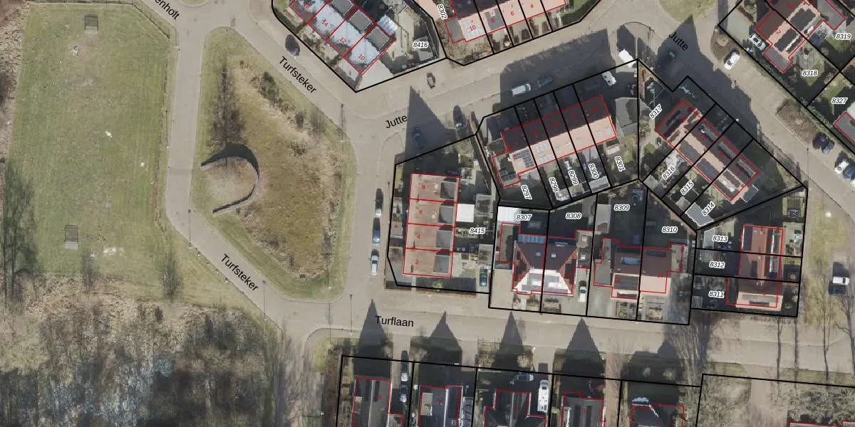 Het perceel waarop Turfsteker 6 staat heeft een oppervlakte van 775 m². Dit is een groot perceel. De perceeloppervlakte wordt geregistreerd door het Kadaster. Gedetailleerde informatie over de maten van dit perceel kunt u vinden in het rapport Kadastrale kaart met maatvoering van Turfsteker 6.