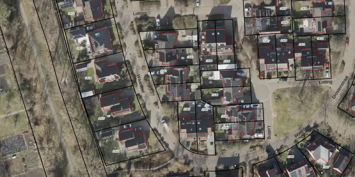 Gebruik de zoekbalk of klik op een perceel voor informatie over de adressen binnen dit perceel.