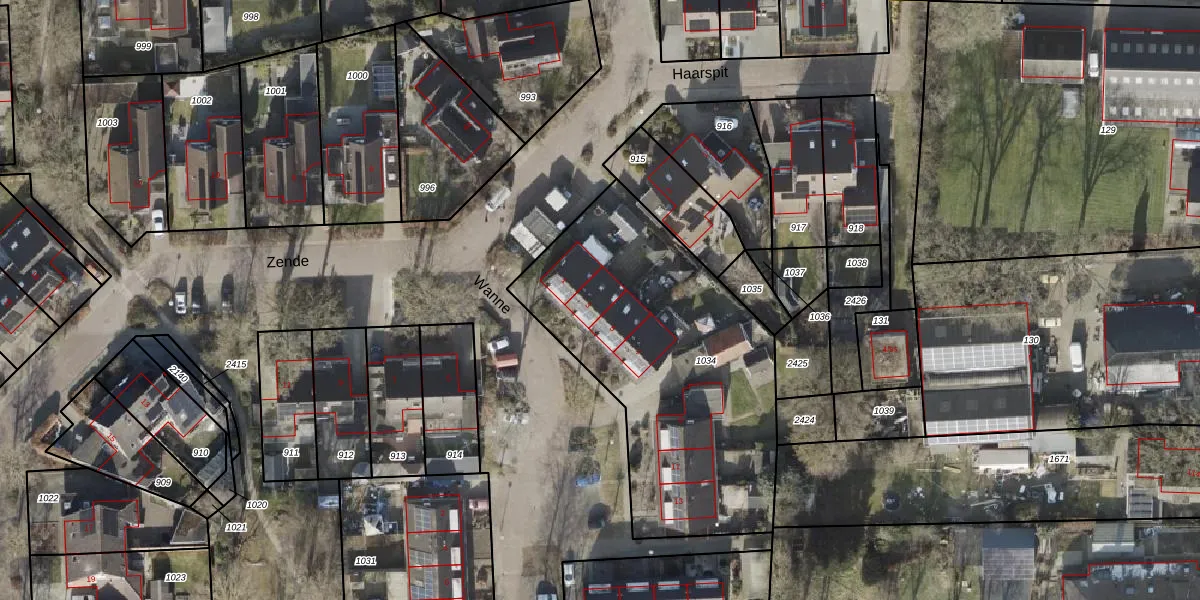 Het perceel waarop Wanne 3 staat heeft een oppervlakte van 1517 m². Dit is een zeer groot perceel. De perceeloppervlakte wordt geregistreerd door het Kadaster. Gedetailleerde informatie over de maten van dit perceel kunt u vinden in het rapport Kadastrale kaart met maatvoering van Wanne 3.