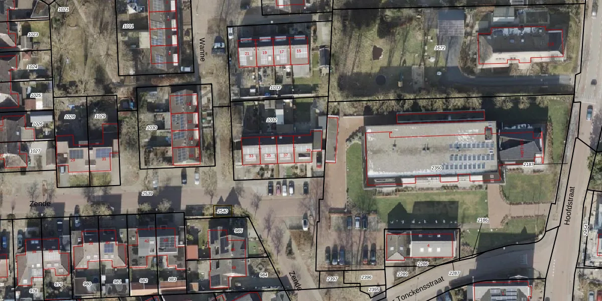Het perceel waarop Zende 39 staat heeft een oppervlakte van 825 m². Dit is een groot perceel. De perceeloppervlakte wordt geregistreerd door het Kadaster. Gedetailleerde informatie over de maten van dit perceel kunt u vinden in het rapport Kadastrale kaart met maatvoering van Zende 39.