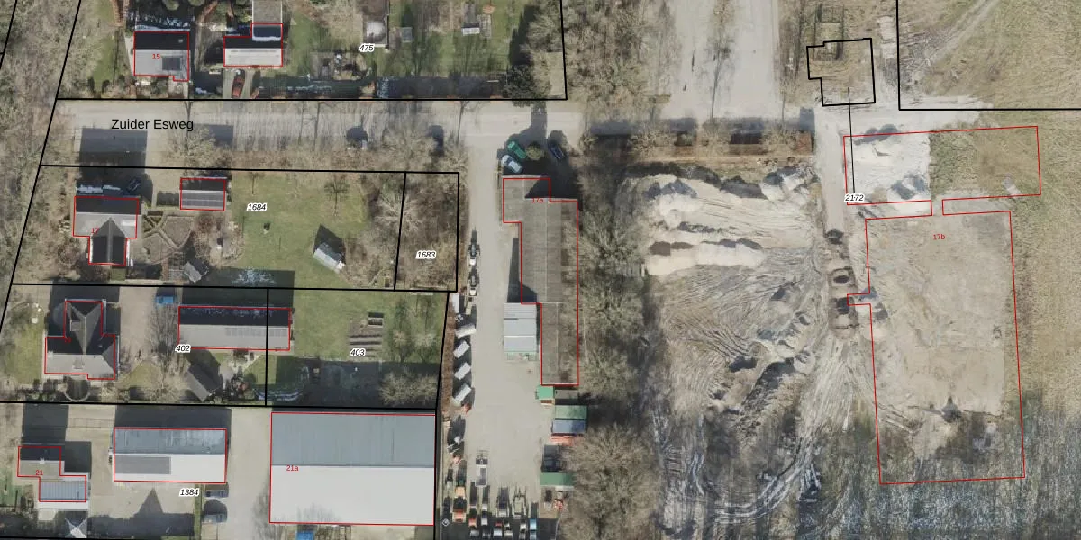 Het perceel waarop Zuider Esweg 17-a staat heeft een oppervlakte van 4,3 ha. Dit is een zeer groot perceel. De perceeloppervlakte wordt geregistreerd door het Kadaster. Gedetailleerde informatie over de maten van dit perceel kunt u vinden in het rapport Kadastrale kaart met maatvoering van Zuider Esweg 17-a.