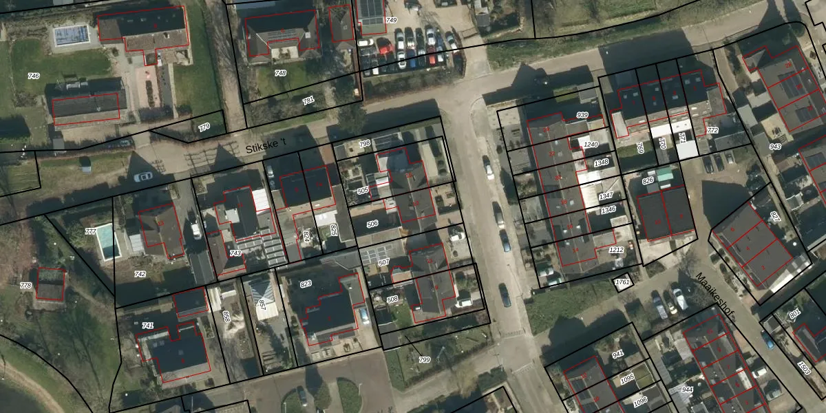 Gebruik de zoekbalk of klik op een perceel voor informatie over de adressen binnen dit perceel.
