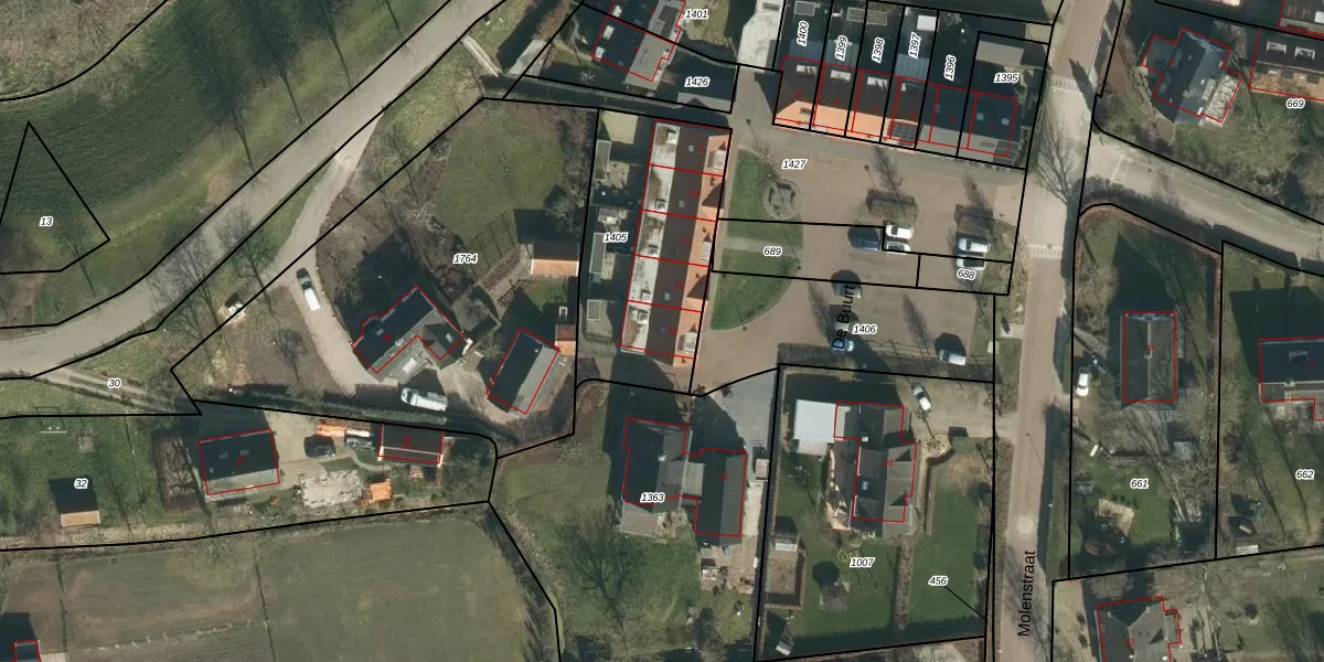 Het perceel waarop De Buurt 13 staat heeft een oppervlakte van 780 m². Dit is een groot perceel. De perceeloppervlakte wordt geregistreerd door het Kadaster. Gedetailleerde informatie over de maten van dit perceel kunt u vinden in het rapport Kadastrale kaart met maatvoering van De Buurt 13.