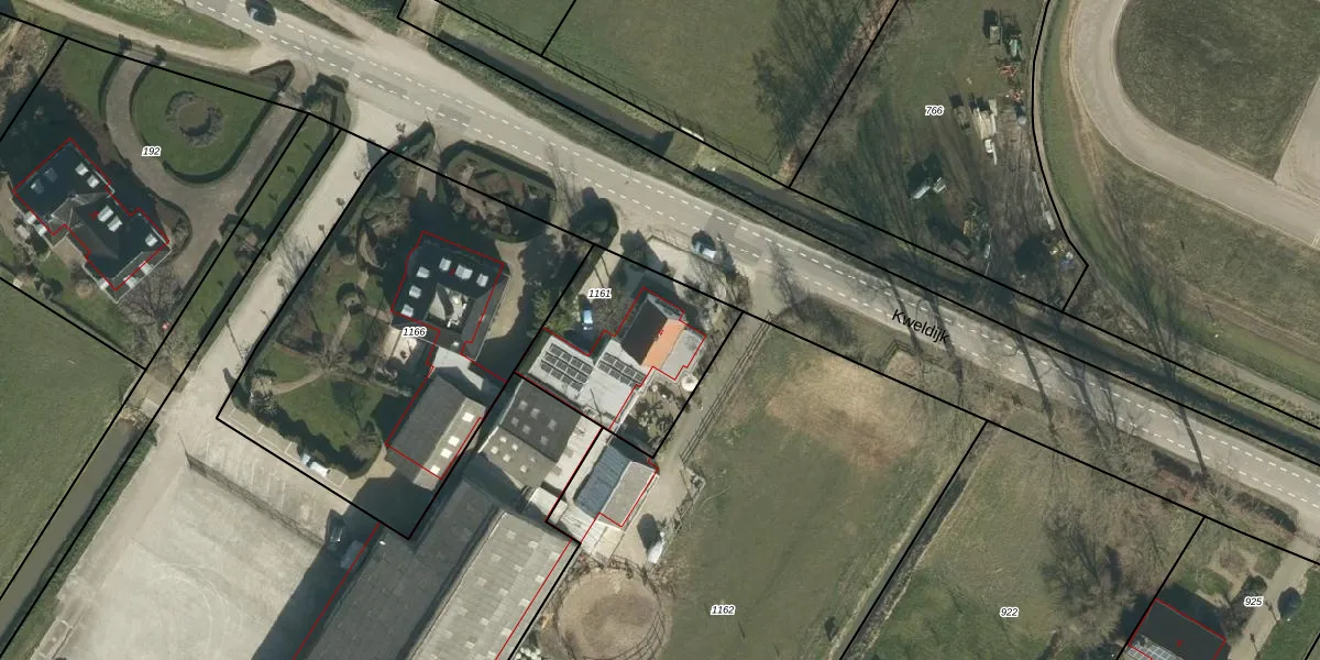 Het perceel waarop Kweldijk 4 staat heeft een oppervlakte van 595 m². Dit is een groot perceel. De perceeloppervlakte wordt geregistreerd door het Kadaster. Gedetailleerde informatie over de maten van dit perceel kunt u vinden in het rapport Kadastrale kaart met maatvoering van Kweldijk 4.
