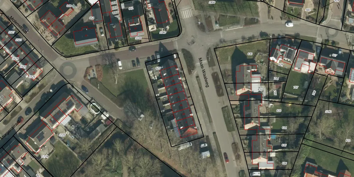 Het perceel waarop Maas-Waalweg 2-b staat heeft een oppervlakte van 985 m². Dit is een groot perceel. De perceeloppervlakte wordt geregistreerd door het Kadaster. Gedetailleerde informatie over de maten van dit perceel kunt u vinden in het rapport Kadastrale kaart met maatvoering van Maas-Waalweg 2-b.