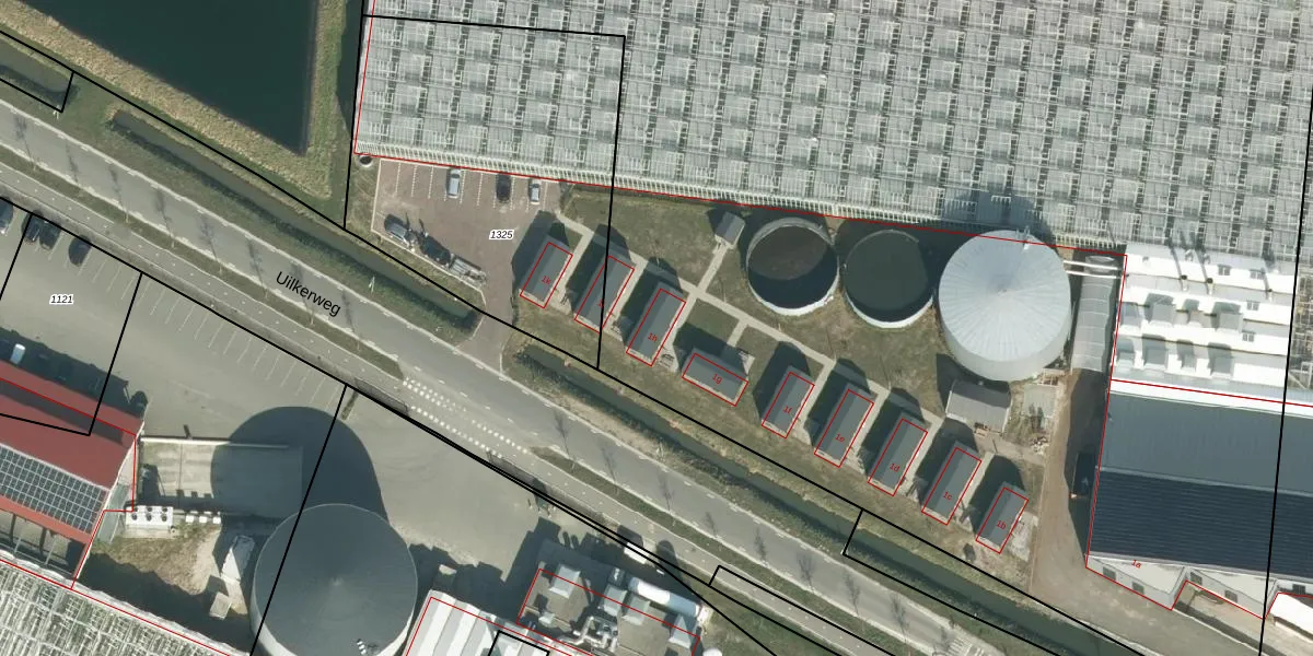 Het perceel waarop Uilkerweg 1-h staat heeft een oppervlakte van 2,6 ha. Dit is een zeer groot perceel. De perceeloppervlakte wordt geregistreerd door het Kadaster. Gedetailleerde informatie over de maten van dit perceel kunt u vinden in het rapport Kadastrale kaart met maatvoering van Uilkerweg 1-h.